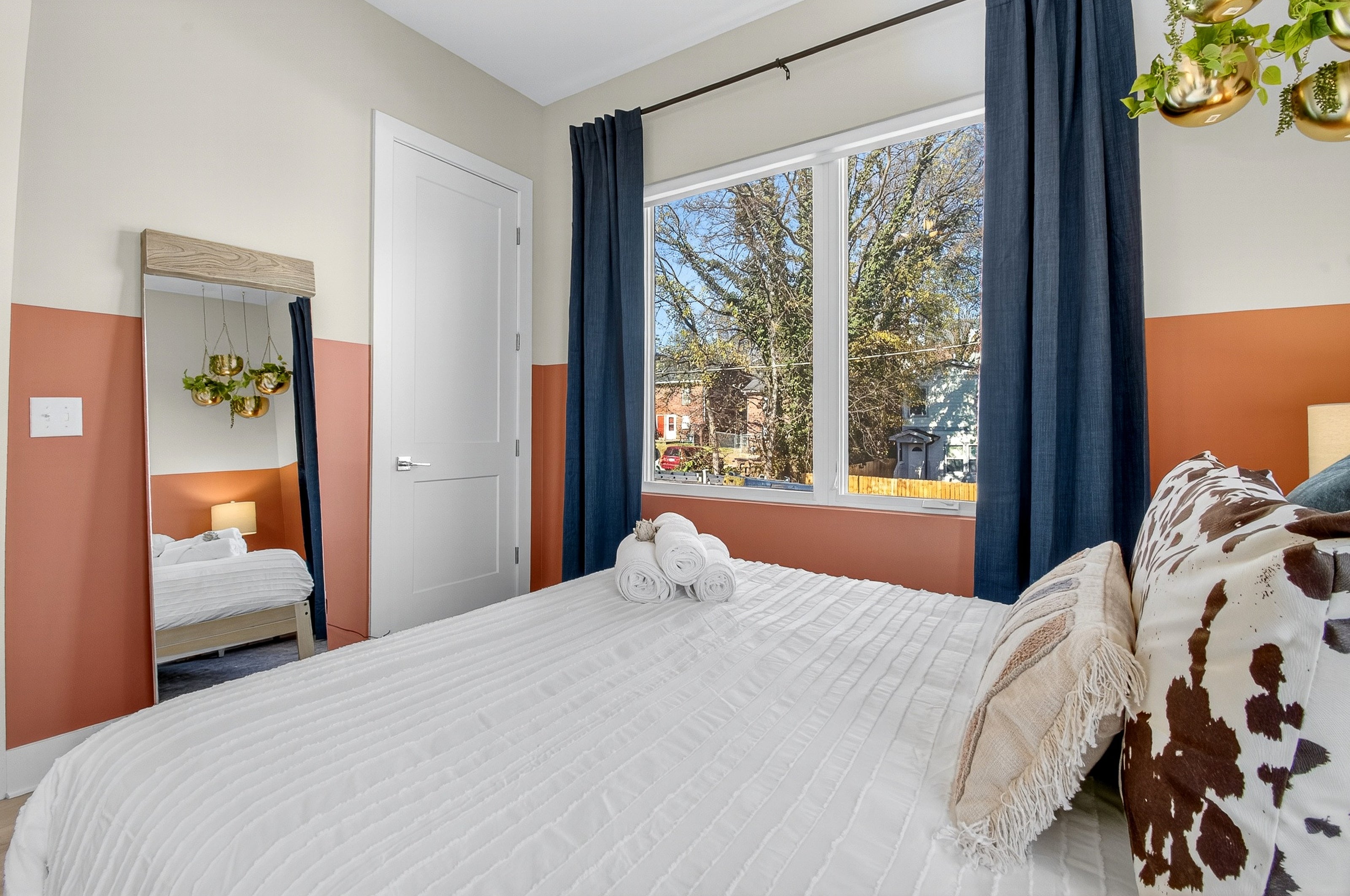 Welcome to Herman Haven, a peaceful yet vibrant retreat just minutes from Broadway, The Gulch, and Music Row. Recently refreshed through Pink Wall Designs’ BNB Boost service, this home blends bold boho-chic style with calm, wellness-focused touches for bachelorettes, families, and groups.