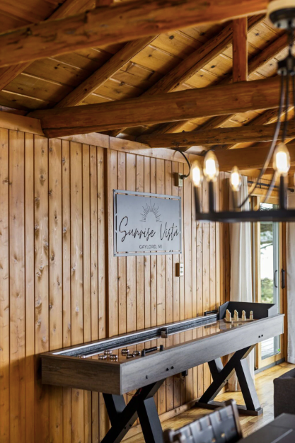 Located in Gaylord, MI, this lakefront property is perfect for your next big group getaway! This home sleeps 11, and is packed with amenities, including kayaks, a private dock, grill, and hot tub. Peek inside of the thoughtful design below.