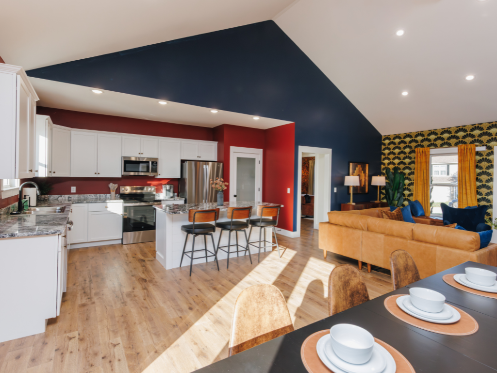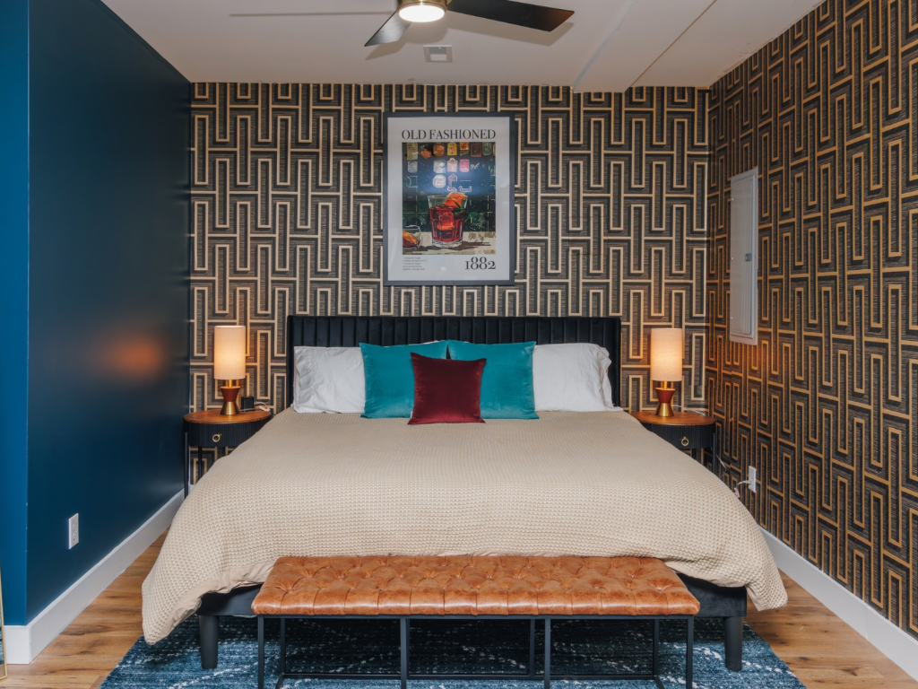 Inside, the design is as intentional and flavorful as the bourbons you’ll discover nearby. Each room reflects Kentucky’s unique personality: rugged and refined, spirited yet timeless. With four king bedrooms and three full bathrooms, every space is thoughtfully styled and fully stocked for rest, retreat, and a little indulgence.